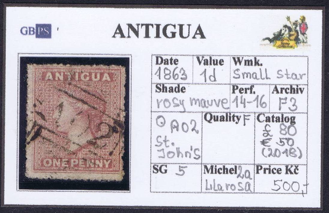 ANTIGUA 1863 SG 5 1d rosy mauve wmk.SS perf.14-16 (A02)