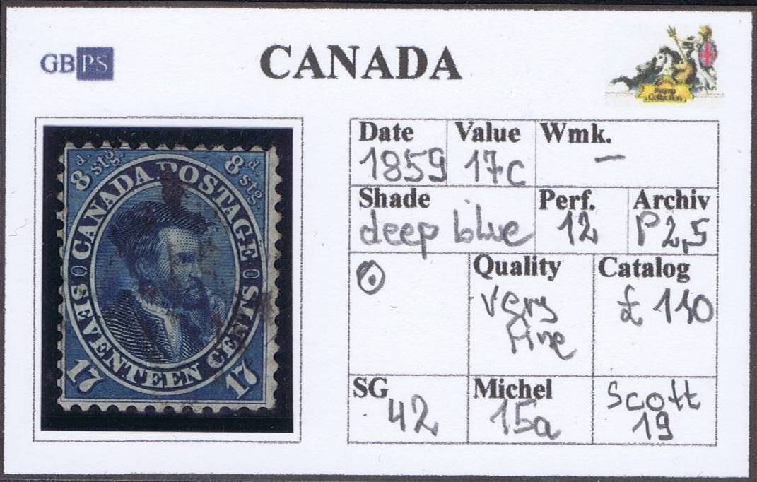 CANADA 1859 SG42 17c deep blue WX P12 A1