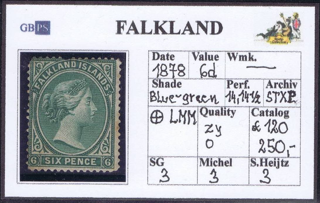 FALKLAND 1878-1879 SG3 6d blue-green (SH3) WX