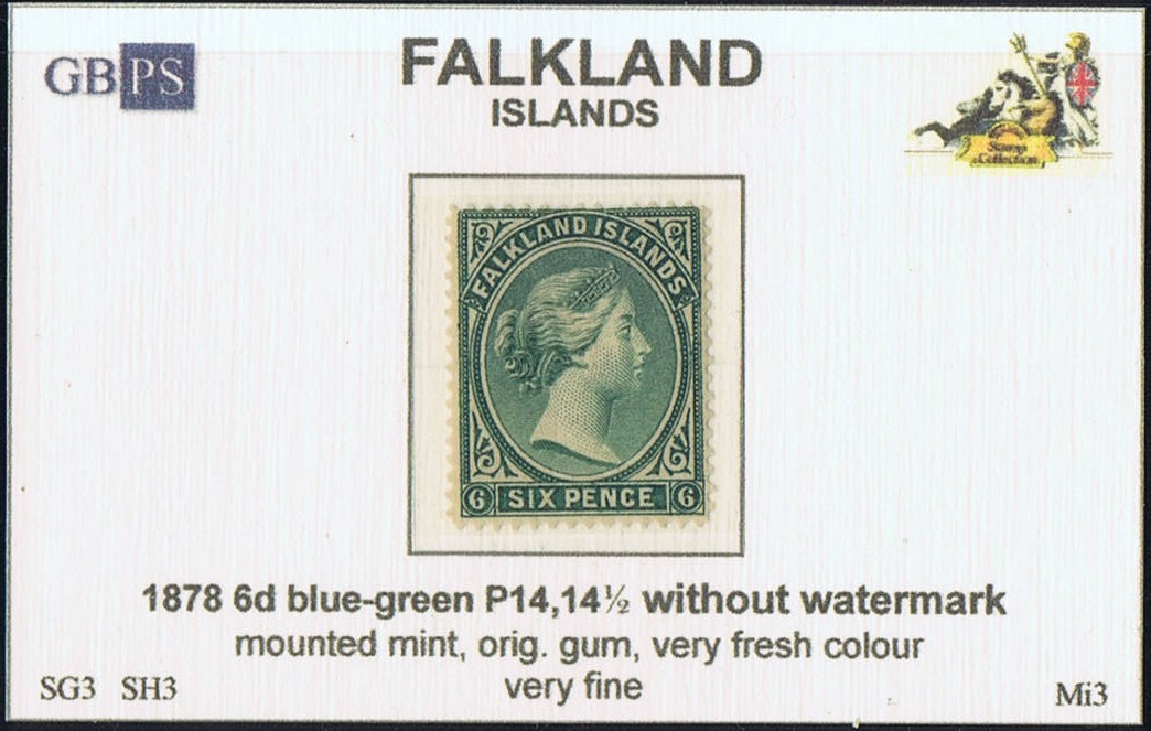 FALKLAND 1878-1879 SG3 6d blue-green (SH3) WX