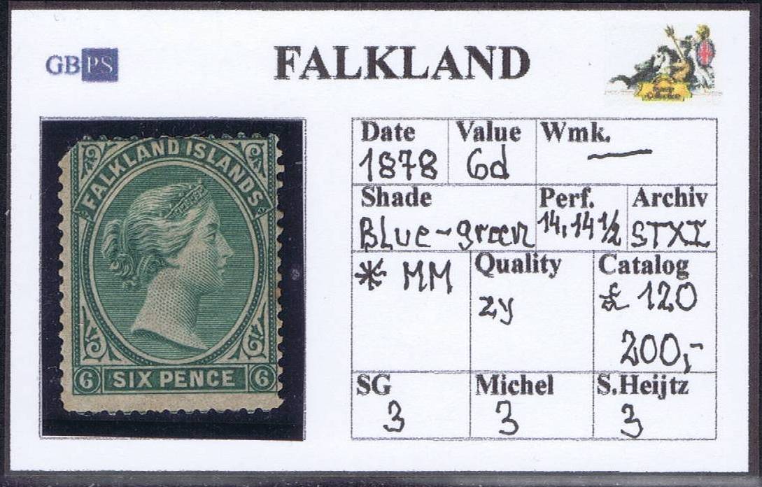 Úvodní stránka » Nabídka / Offer » GB Commonwealth » Falkland » FALKLAND 1878-1879 SG3 6d blue-green (SH3) WX