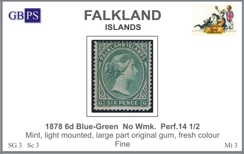 FALKLAND 1878-1879 SG3 6d blue-green (SH3) WX