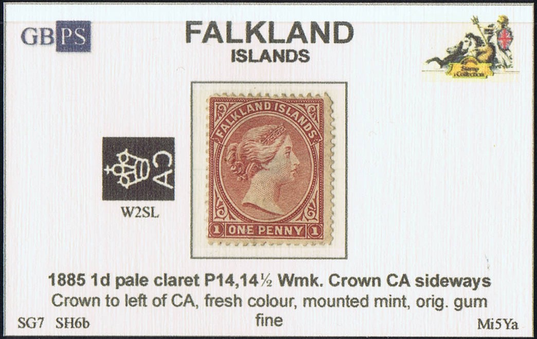 Úvodní stránka » Nabídka / Offer » GB Commonwealth » Falkland » FALKLAND 1885-1891 SG7 1d pale claret (SH6b) WCCASL