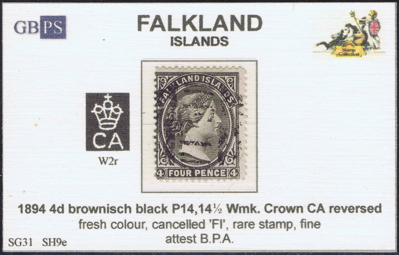 FALKLAND 1891-1902 SG31 4d brownish black (SH9e) WCCAr