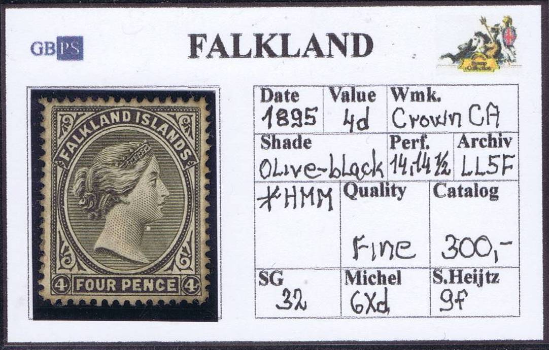 Úvodní stránka » Nabídka / Offer » GB Commonwealth » Falkland » FALKLAND 1891-1902 SG32 4d olive-black (SH9f) WCCA