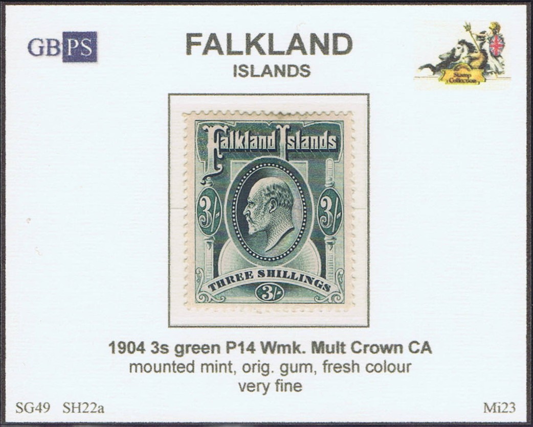 FALKLAND 1904-1912 SG49 3s myrtle-green SH22a) WMCCA