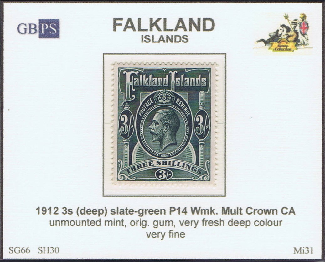 FALKLAND 1912-1920 SG66 3s (deep) slate-green (SH30) WMCCA