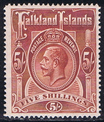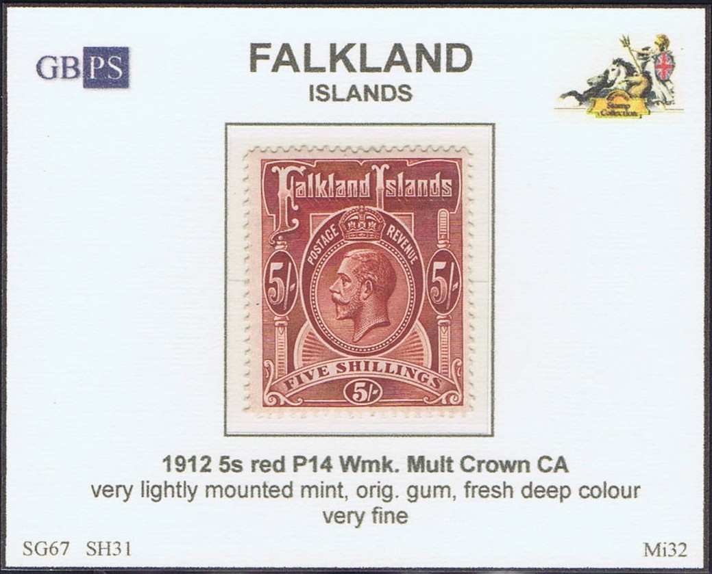 FALKLAND 1912-1920 SG67 5s (deep) red (SH31) WMCCA