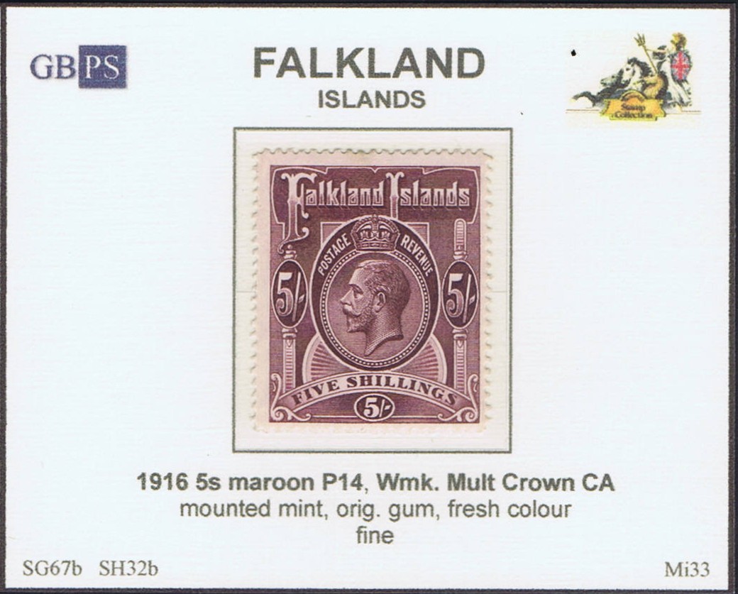 FALKLAND 1912-1920 SG67b maroon (SH32b) WMCCA