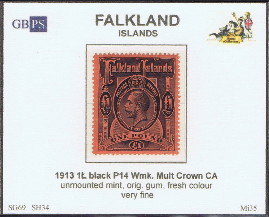 FALKLAND 1912-1920 SG69 1L black (SH34) WMCCA