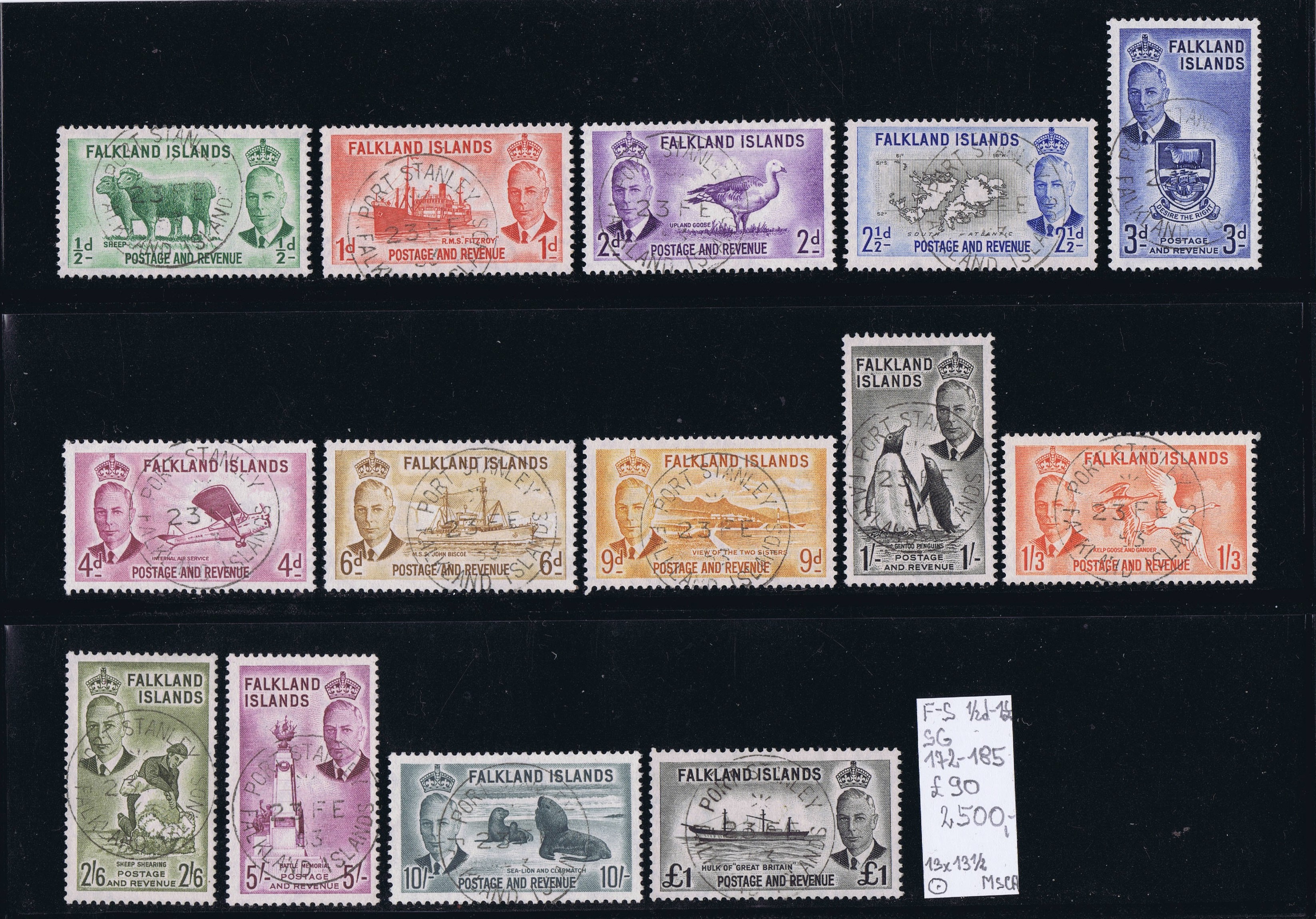 FALKLAND 1952 SG 172-185 0,5d-1Ł wmk.MSCA perf.13x13,5 (23FE'53)