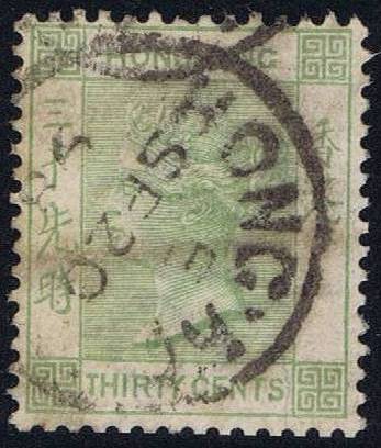 HONG KONG 1882 SG 39 30c yellowish green wmk.CA P14PRODÁNO