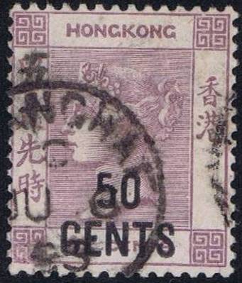 HONG KONG 1891 SG 49 50c on 48c dull purple wmk.CA P14 (SHANGHAI