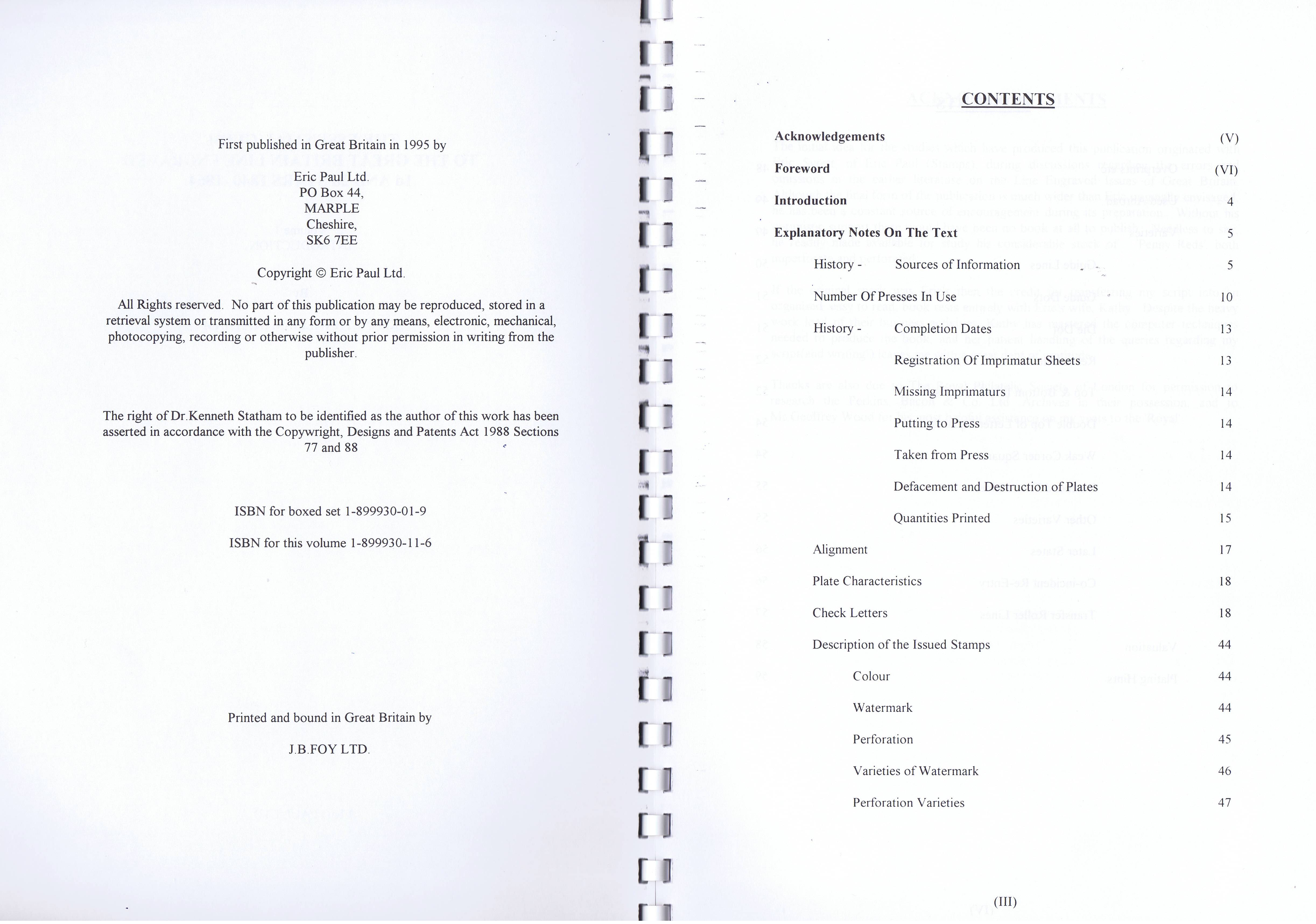 Jedná se o prvních 10 dílů s nejžádanějšími 1d imperf.všechny desky 1-177. Všech 10 dílů o celkovém počtu 2288 stran na kvalitním papíru (děláno na zakázku v tiskárně), nebylo vůbec listováno-čekalo na 4.člena naší skupiny GB, který bohužel nakonec z osobních důvodů tuto literaturu nepřevzal. Celá originál sestava v černých deskách je vidět na scanu, stejně jako detailní snímky porovnání kvality tisku. Jedná se o jedinečné celoživotní dílo Kenneth William Statham, kde se již první díly samostatně nenabízejí.