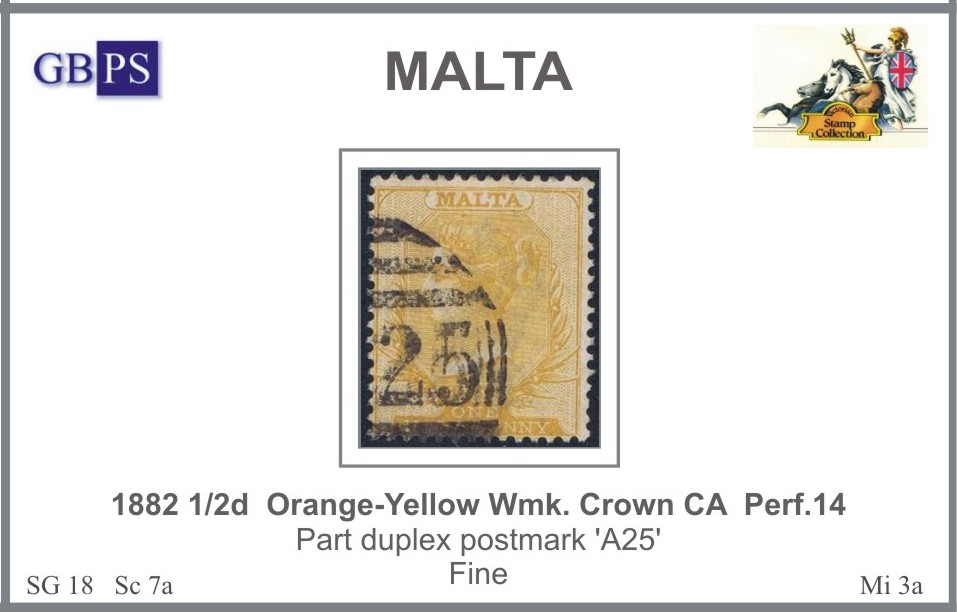 MALTA 1882 SG 18 0,5d orange-yellow wmk. crown CA perf.14 (A25)