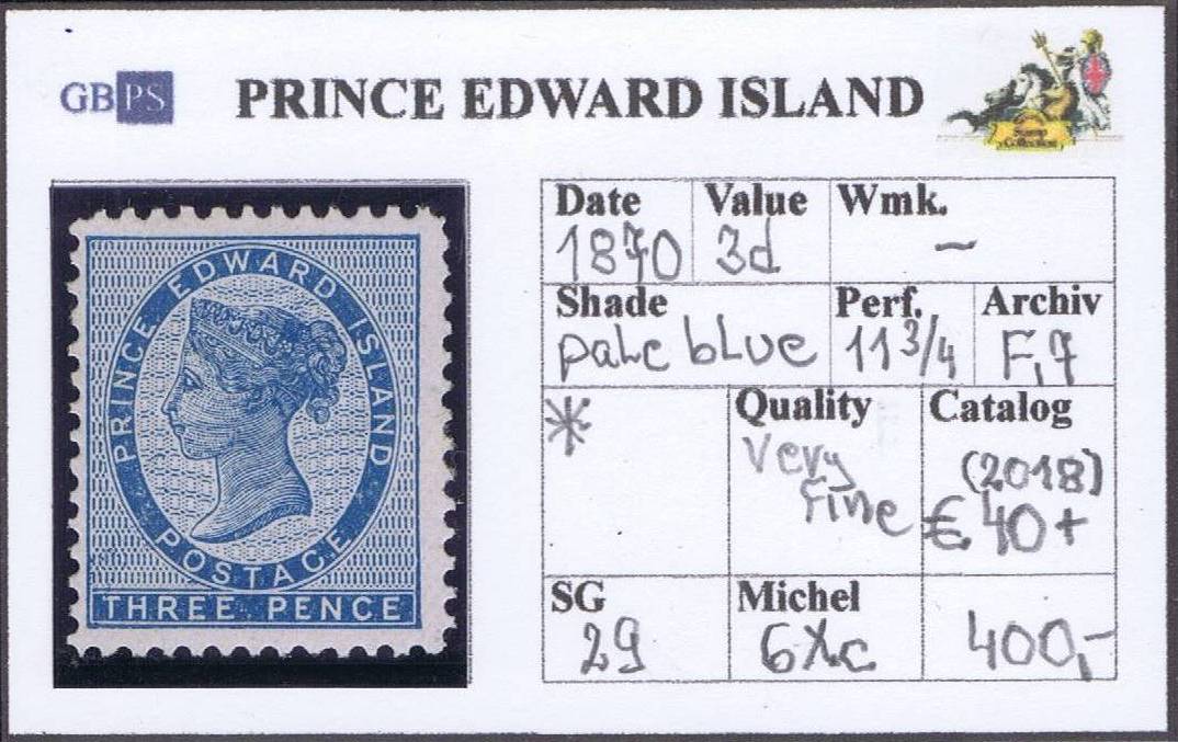 PRINCE EDWARD ISLAND 1870 SG29 3d pale blue WP WX P11 3'4 M