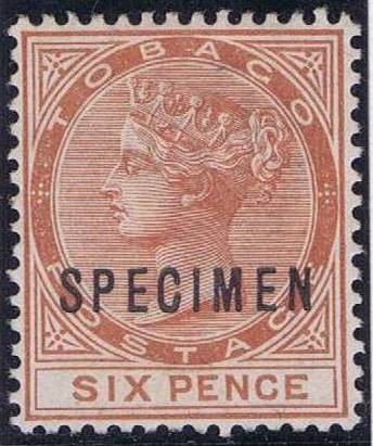 TOBAGO 1886 SG23S 6d orange-brown SPECIMEN WCA P14 UN