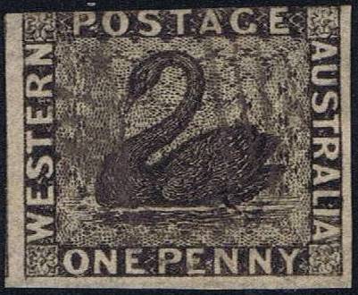 WEST.AUSTRALIA 1854 SG 1 1d black wmk.swan imperf. (vg) A2